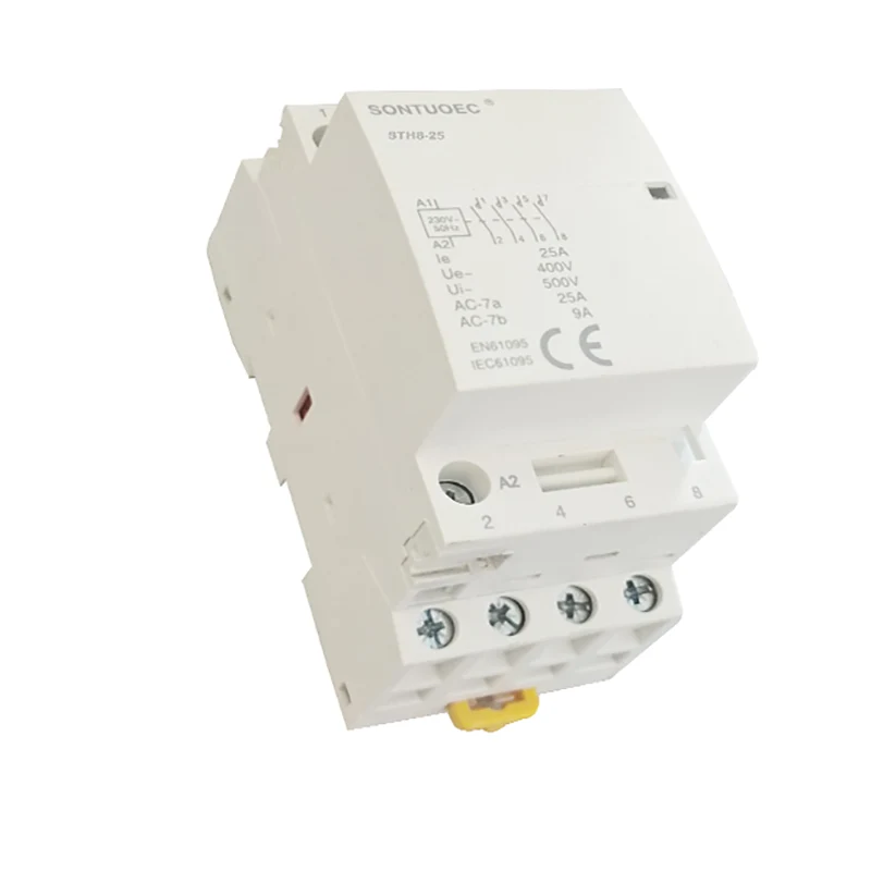 Os contactores de CA da serie STH8-100 están deseñados principalmente para AC 50Hz (ou 60Hz), cunha tensión de funcionamento nominal de ata 400V. Teñen unha corrente de funcionamento de ata 100A baixo a categoría de uso AC-7A e ata 40A baixo a categoría de uso AC-7B. Estes contactores úsanse para controlar cargas baixas ou lixeiramente indutivas en aplicacións residenciais e similares, así como para controlar as cargas do fogar. O produto aplícase principalmente en casas, hoteis, apartamentos, edificios de oficinas, edificios públicos, centros comerciais, locais deportivos, etc., para conseguir funcións de control automatizadas. Cumprimento de normas: IEC61095, GB/T17885.