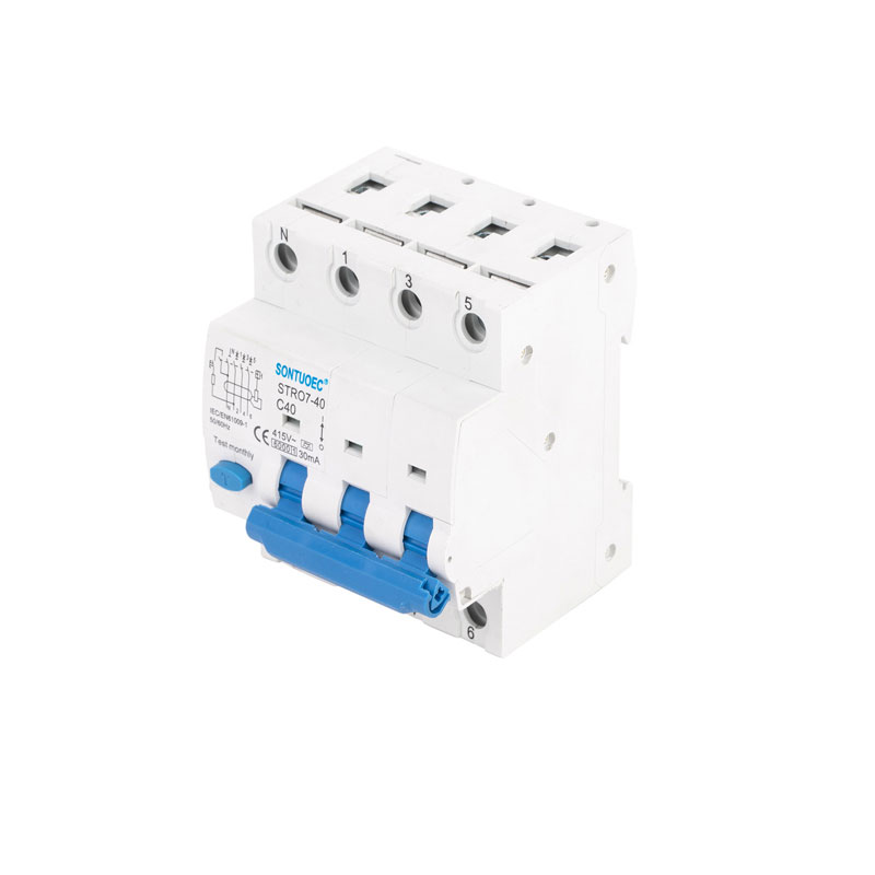 Protección de curtocircuíto: cando se produce un curtocircuíto nun circuíto, o STRO7-40 RCBO cortará rapidamente o circuíto para evitar que a corrente de curtocircuíto causase graves danos no circuíto e nos equipos.